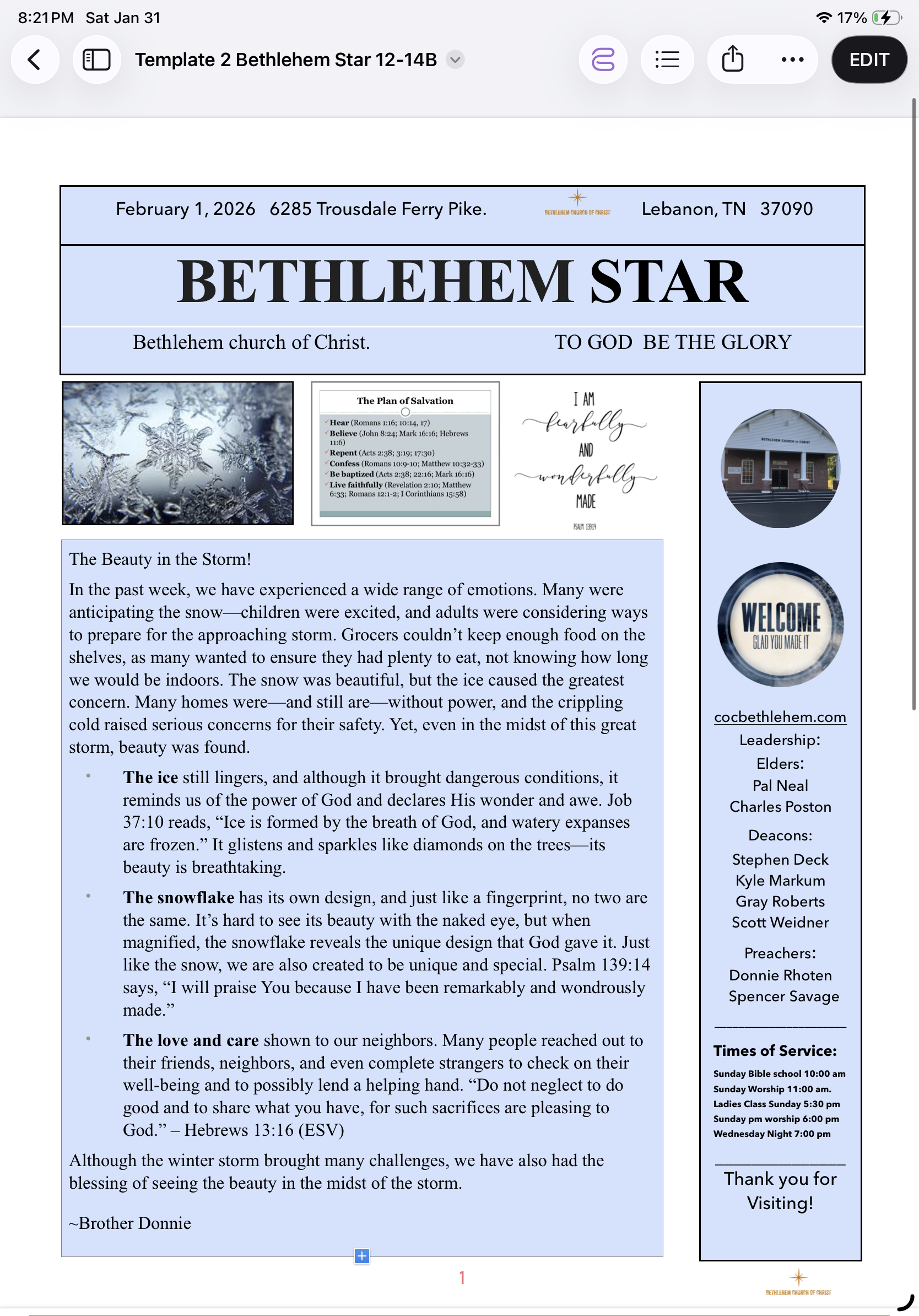We are a group of people who gather together to worship the Lord Jesus Christ. We understand that it is by His grace and mercy that we can be forgiven and accepted by God. We are simply called Christian’s and practice simple New Testament worship. We love one another and are dedicated to show the love of God to all. It is our prayer that you would come and join us on our journey.