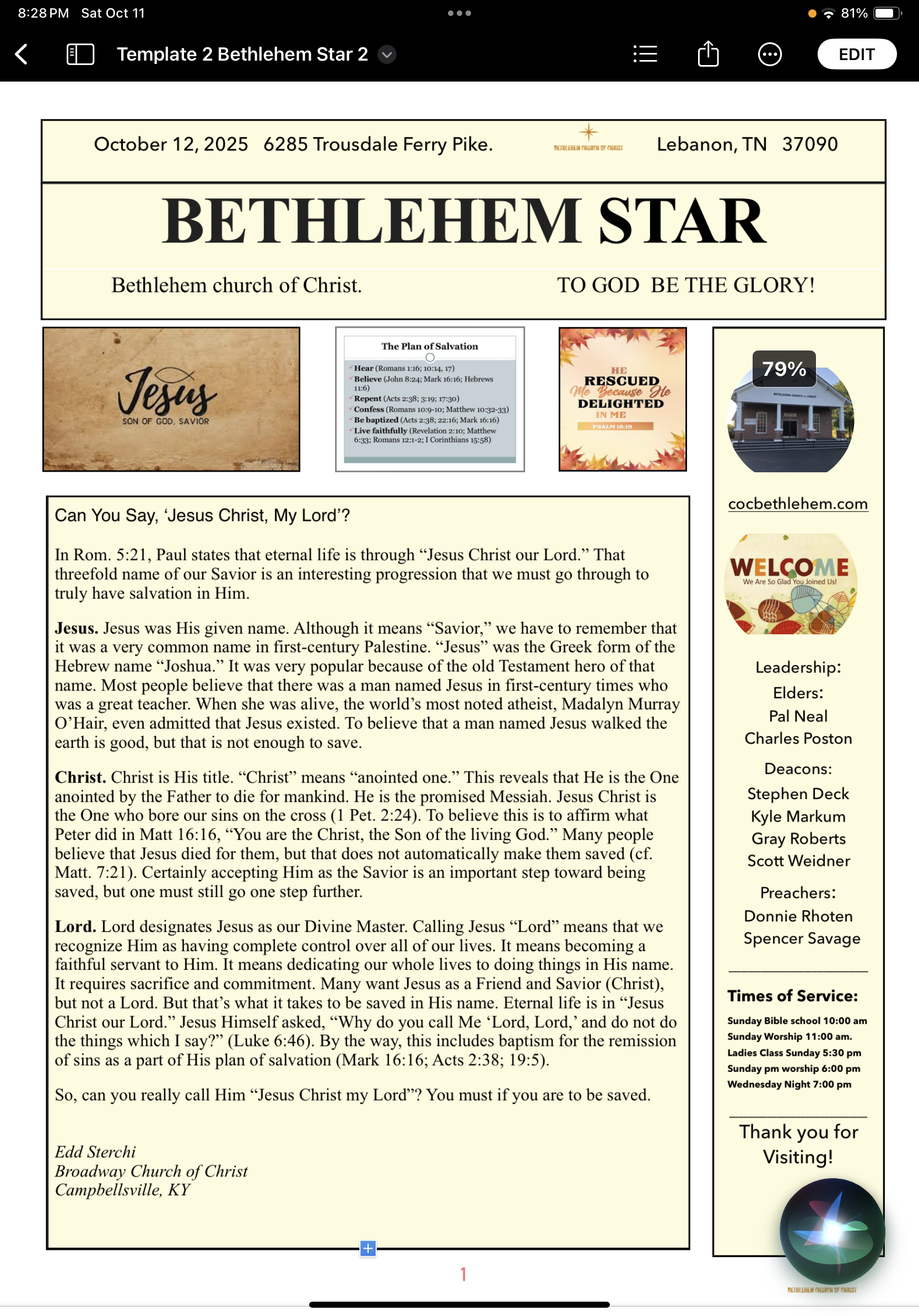 We are a group of people who gather together to worship the Lord Jesus Christ. We understand that it is by His grace and mercy that we can be forgiven and accepted by God. We are simply called Christian’s and practice simple New Testament worship. We love one another and are dedicated to show the love of God to all. It is our prayer that you would come and join us on our journey.